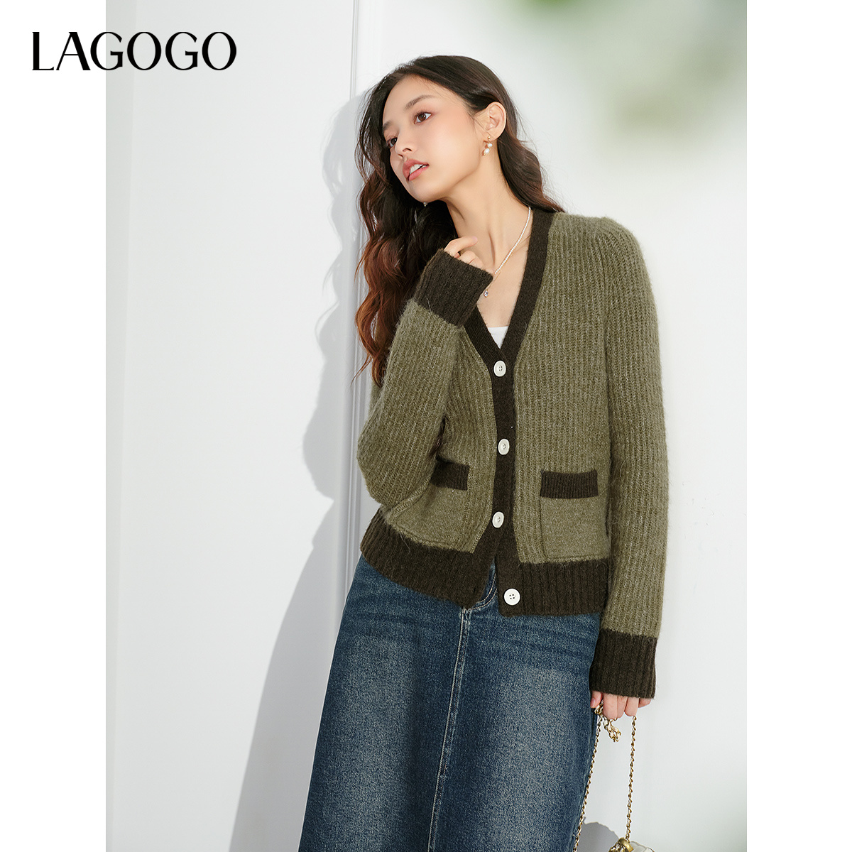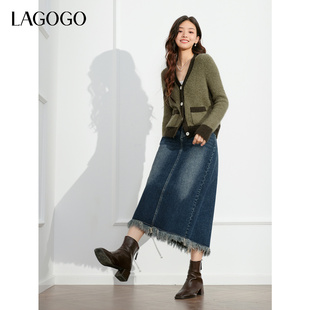 女拉谷谷春秋新款 LAGOGO含羊毛针织衫 微胖穿搭撞色外套 抗起球