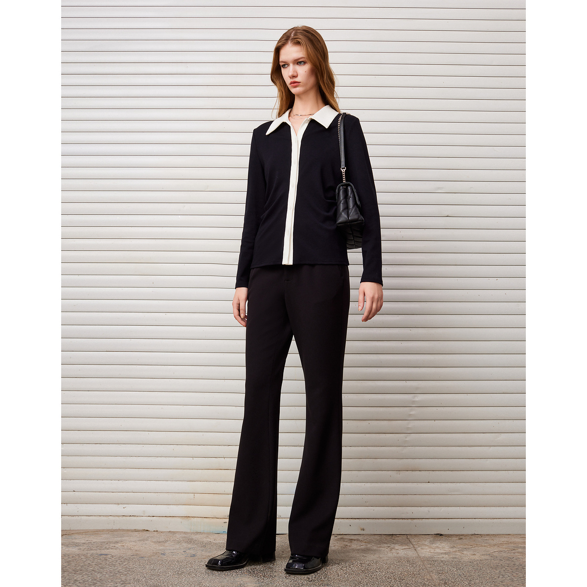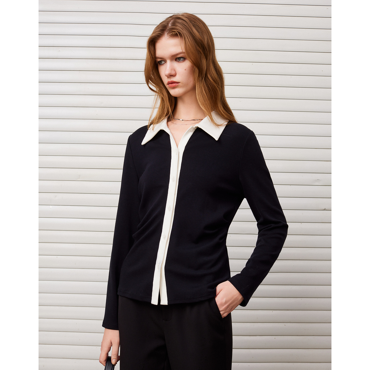 唐可娜儿秋季 正肩长袖 百搭休闲撞色修身 式 T恤女 腰部收褶衬衫 DKNY