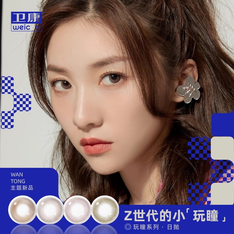 卫康玩瞳隐形眼镜日抛10片自然大小直径混血感美瞳 清仓