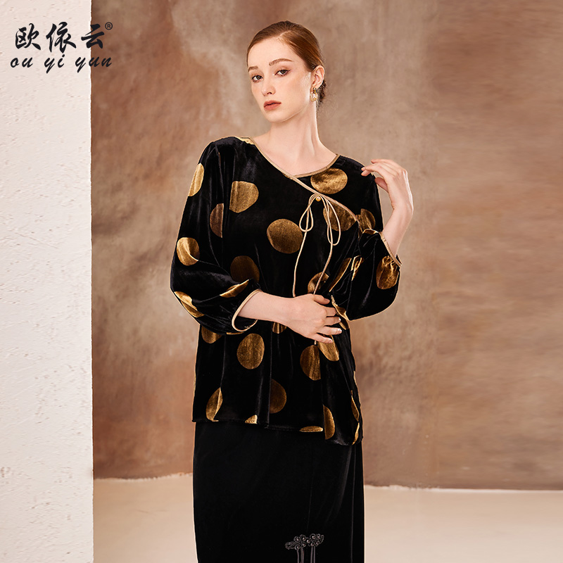 妈妈装 国风小西装 新款 中老年女装 两件套 洋气金丝绒春秋套装 新中式