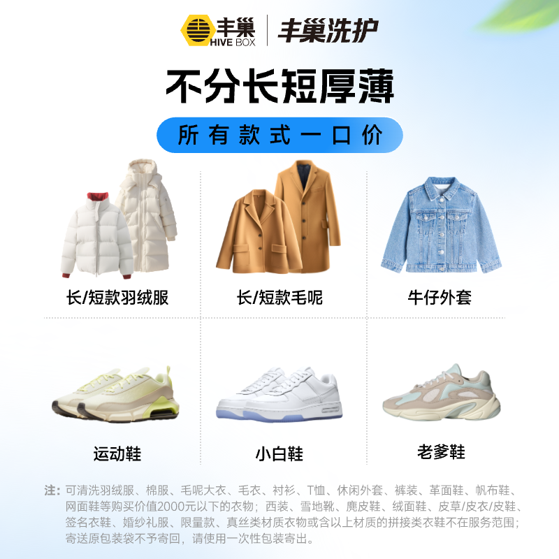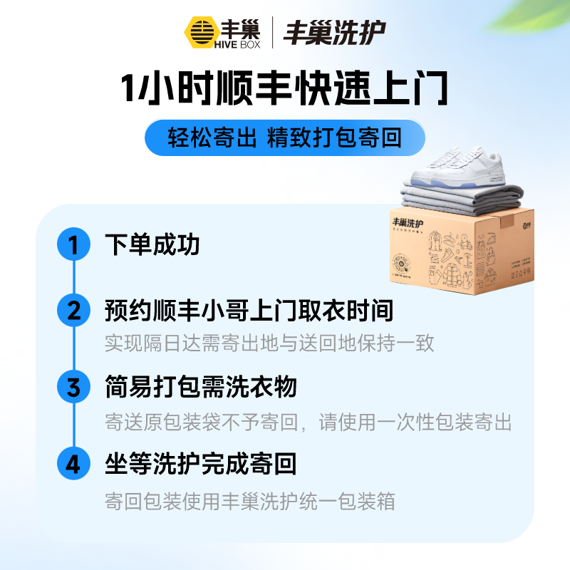 任洗2件 丰巢洗护洗衣鞋 衣鞋 任洗3件顺丰 上门取送 包邮 隔日达