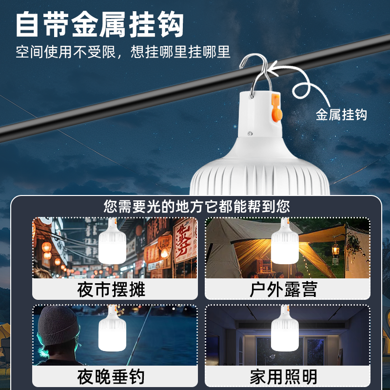 LED充电灯泡夜市摆摊地摊灯家用停电应急灯户外移动照明灯露营灯