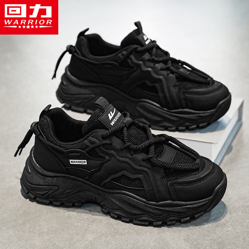 透气运动休闲网面跑步增高厚底全黑色老爹潮鞋 回力黑武士男鞋 秋季
