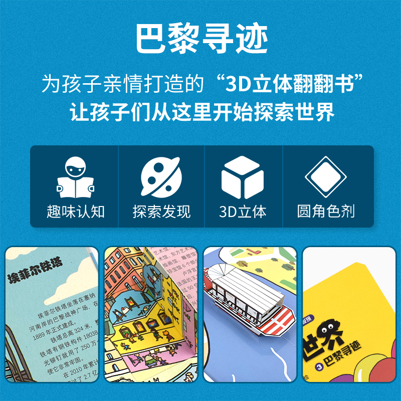 硬壳绘本小学生3D立体书 儿童立体翻翻书 纺织出版 巴黎 社 中 超大开本精装 老渔文化编绘 飞箱游世界 宝宝婴幼儿早教阅读书籍
