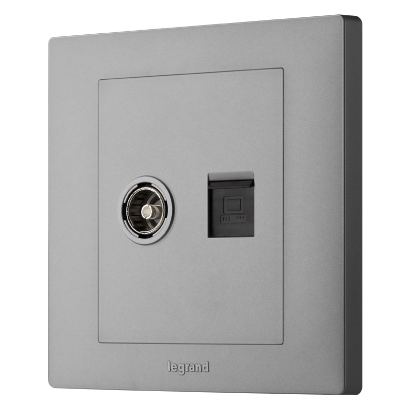 TCL罗格朗博蕴深砂银电脑电视 有线TV家用 网络网线网口插座面板