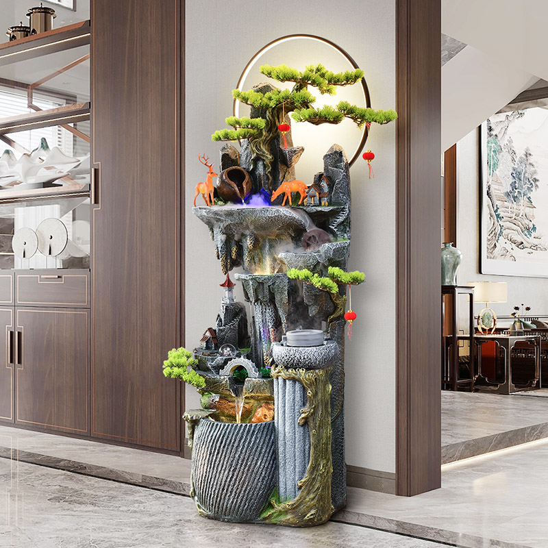 假山流水喷泉摆件办公室客厅电视沙发旁门店风水轮装 饰开业礼品
