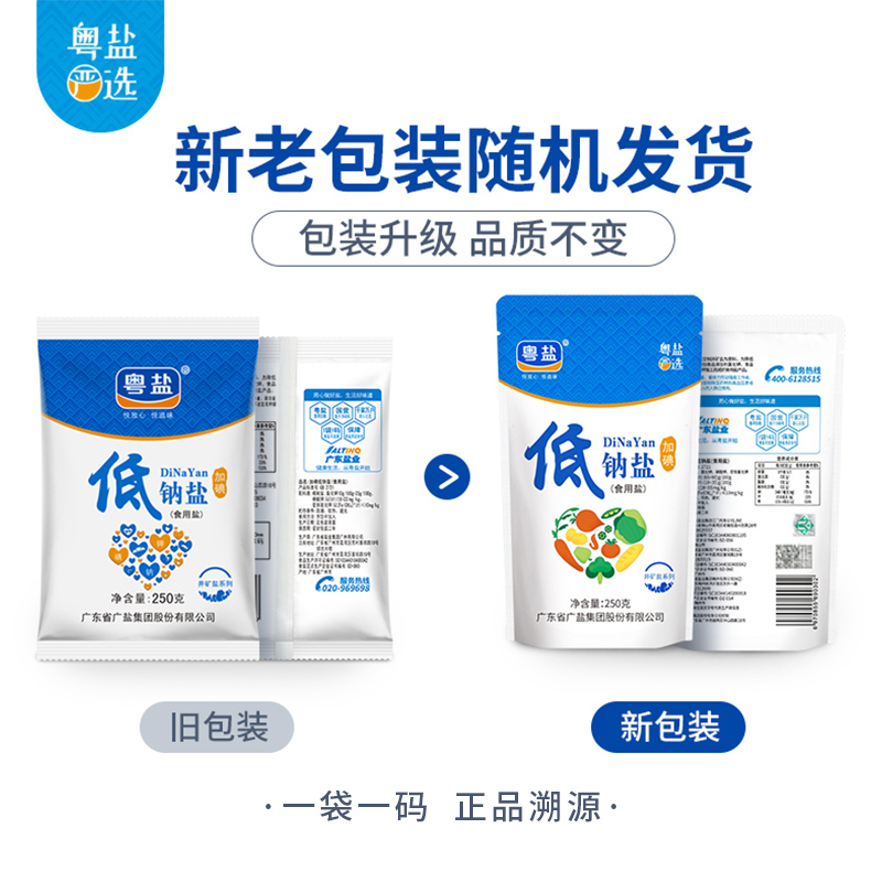 粤盐加碘低钠食盐家用深井细盐巴调味食用盐250g 5包精制盐