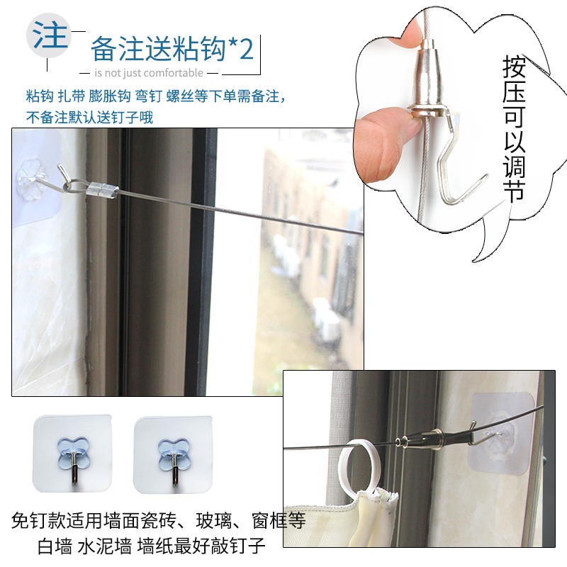 窗帘绳子挂窗帘铁丝绳轨道钢丝绳配件免打孔宿舍床帘挂线拉绳调节