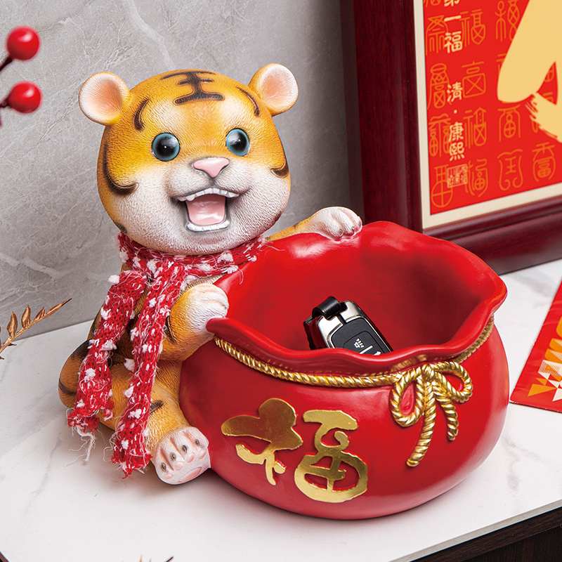 生肖福袋老虎入户玄关钥匙收纳摆件家居客厅茶几装 饰摆设乔迁礼品