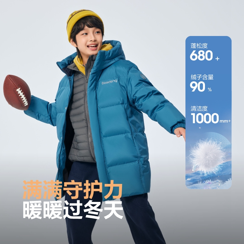 连帽防寒服加厚羽绒服保暖外套 男童女童中长款 波司登2025冬季 新款