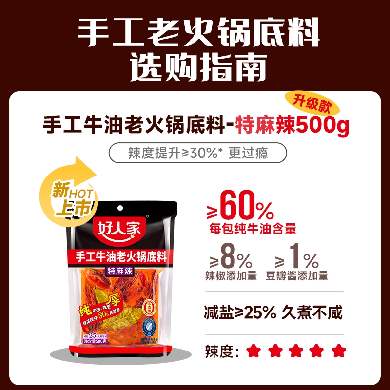 桥头旗舰店重庆牛油火锅底料500g 2老火锅麻辣烫香锅麻辣四川调料