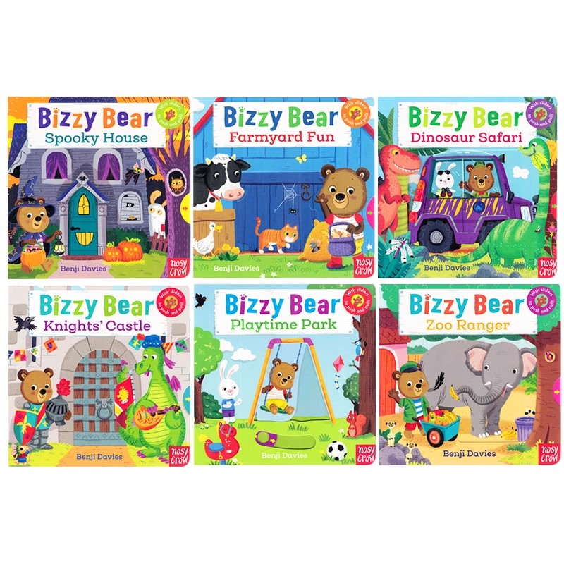 Bear小熊很忙 主题乐园6册 幼儿童英语启蒙认知纸板书 绘本 优学宝贝耐撕耐翻 趣味益智机关操作翻翻书 Bizzy 小熊 英文原版 忙碌