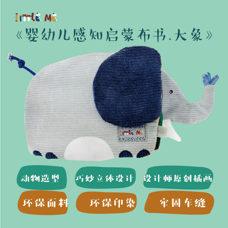 大象 3岁婴幼儿童触觉色彩视觉美感绘本启蒙认知早教玩具布书可水洗撕咬撕扯给孩子满月新生儿礼物 婴幼儿感知启蒙布书 礼盒装
