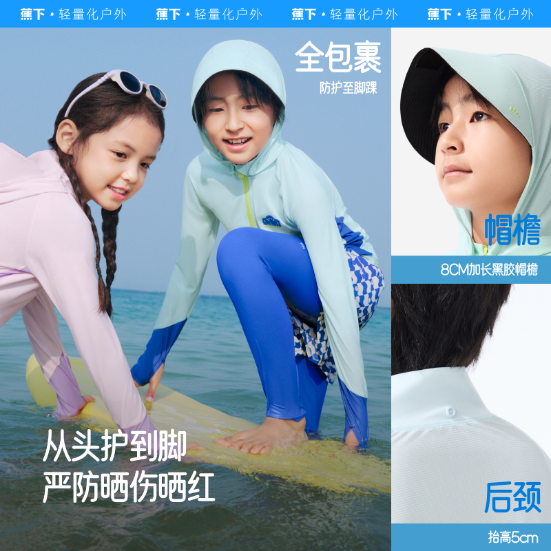 UPF2000 长裤 长袖 蕉下男童全防护运动分体防晒泳衣UD078连帽泳装