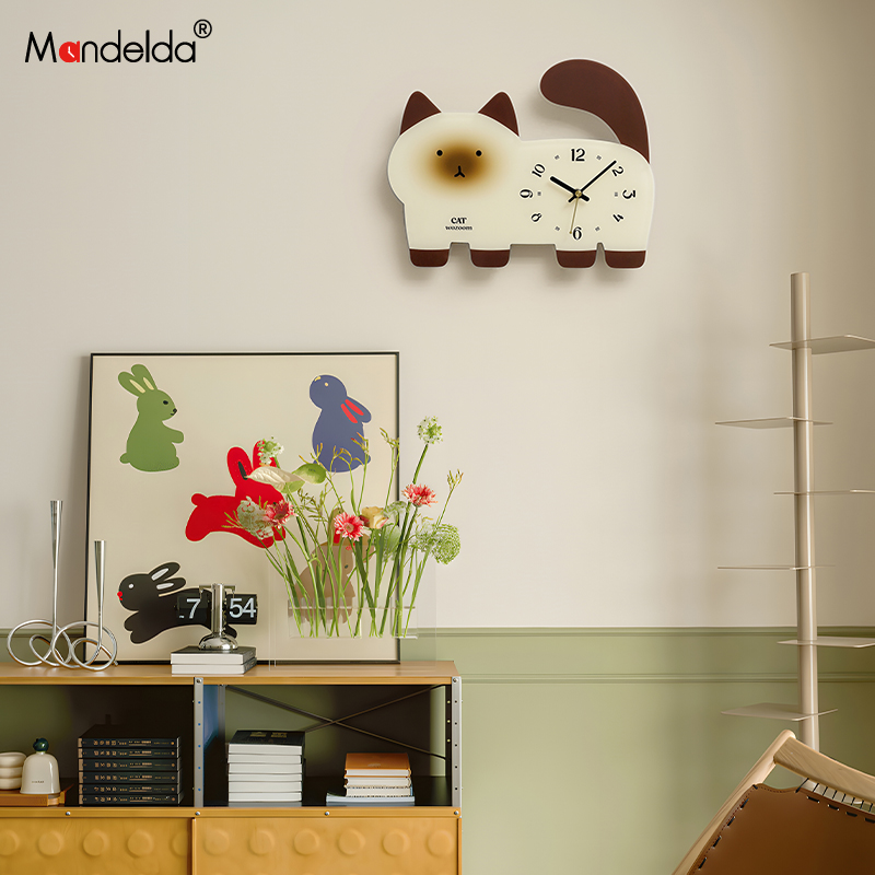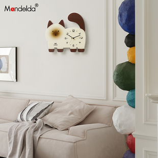 Mandeld免打孔创意猫咪挂钟表客厅家用艺术高级感时钟装 饰墙挂表