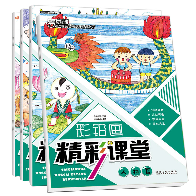 综合篇创意美术青少年美术素质教育丛书美术教材绘画启蒙教学 景物 全4册儿童彩铅画教程精彩课堂少儿彩色铅笔画入门手绘人物 动物