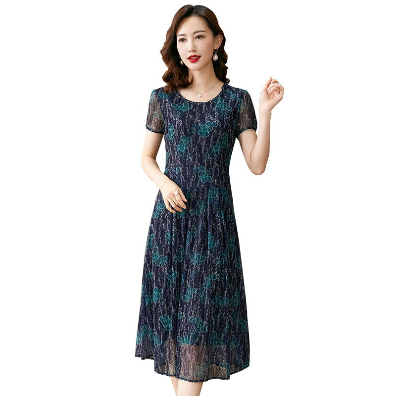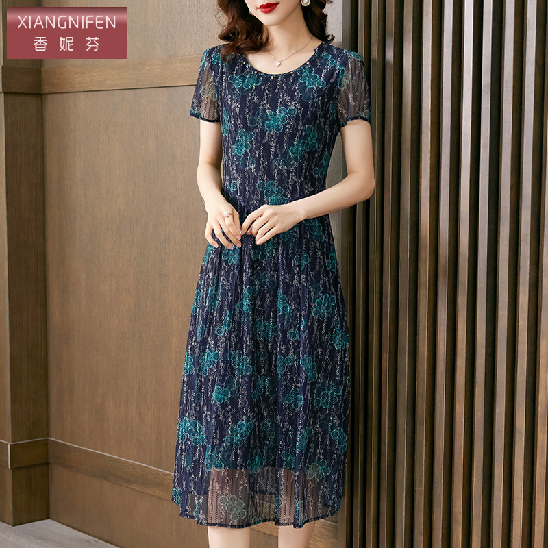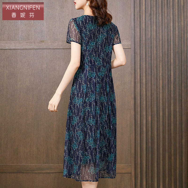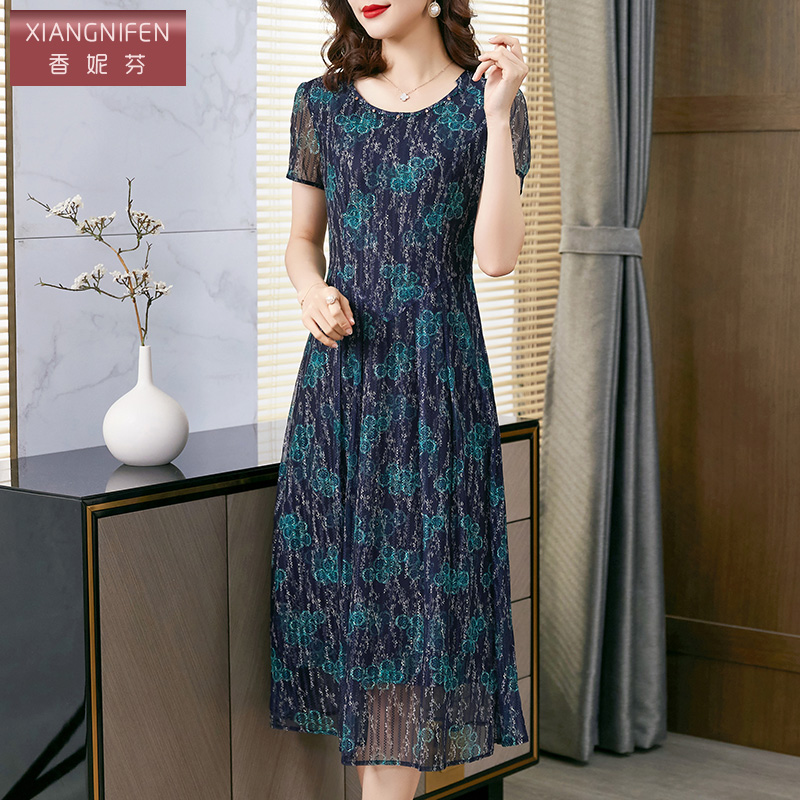 短袖 2025夏季 气质中长款 波点设计感显瘦连衣裙女时尚 A字裙子 新款