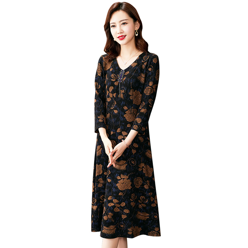 华丽复古宫廷风长款 LULUALWAYS 新款 秋季 连衣裙蛋糕裙 商场同款