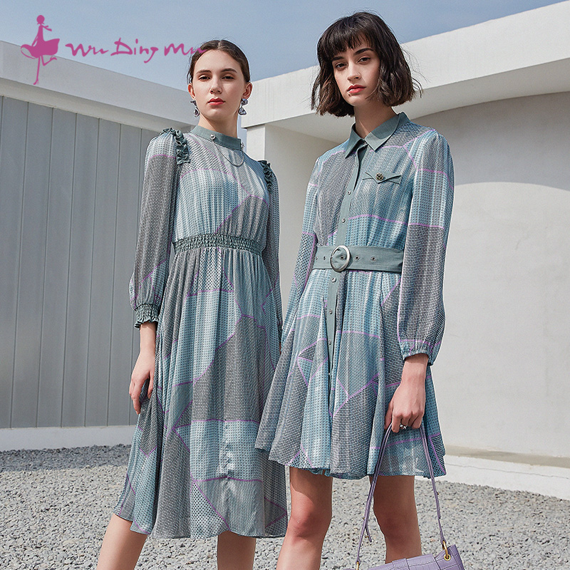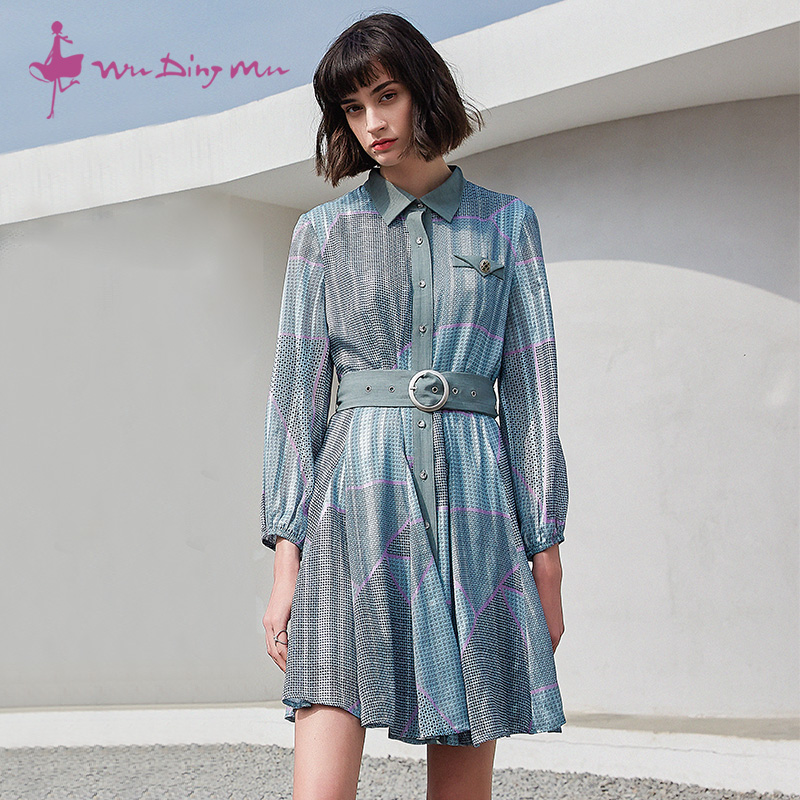 裙子收腰显瘦a字裙中长款 五丁目衣舍春季 衬衫 长袖 连衣裙女士 女装