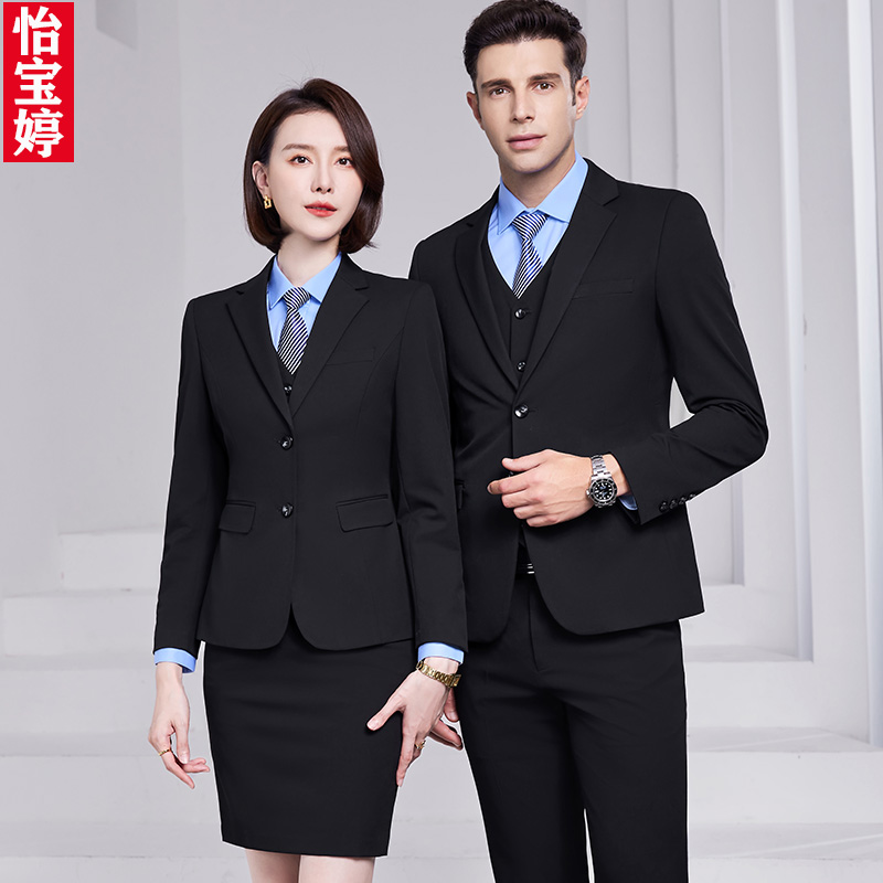 物业管理工作服4S店销售气质工装 职业修身 弹力藏青色西服商务套装
