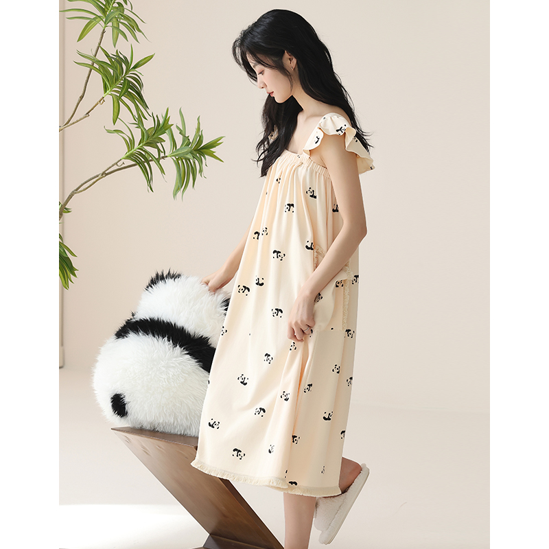 蕉内棉棉300Sleep女款 女士吊带睡裙 睡衣带杯带胸垫莫代尔冰丝短袖