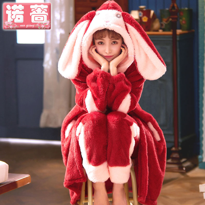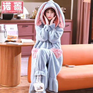 女珊瑚绒加厚保暖纯色套装 秋冬法兰绒睡衣可外穿家居服 雪花绒大码