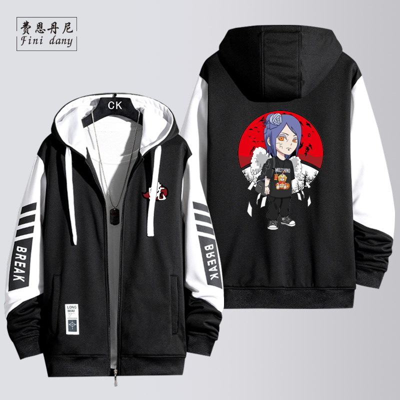 火影忍者晓组织动漫周边新款 印花连帽拉链卫衣外套情侣青少年外套