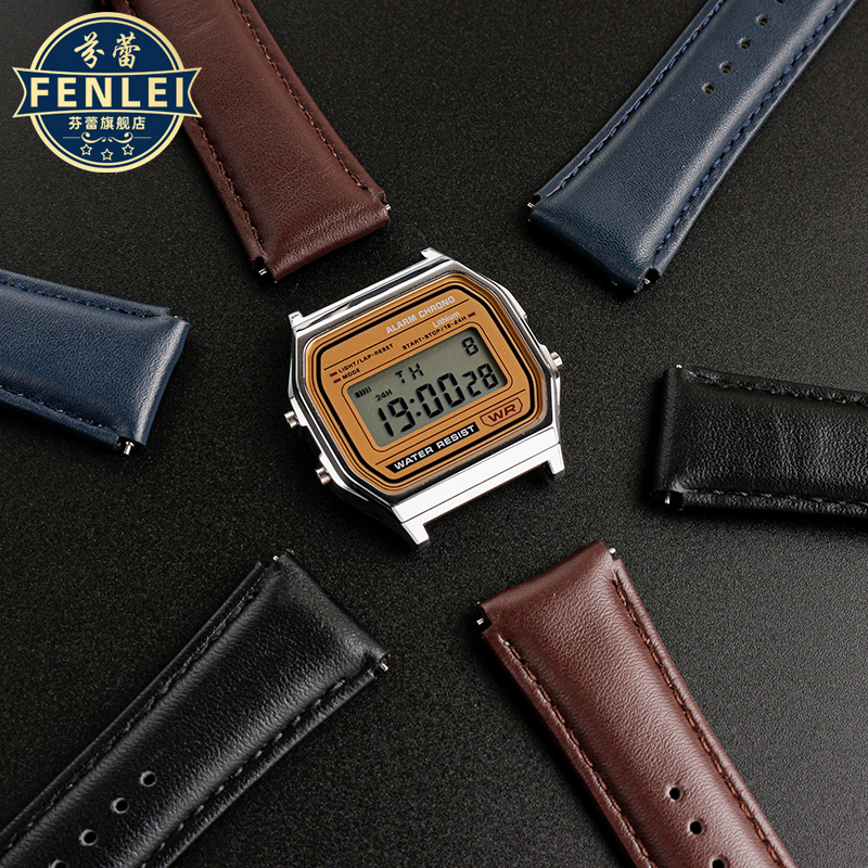 A158 F105 a168复古小金表牛皮手表带 A159 代用卡西欧小方块F91w