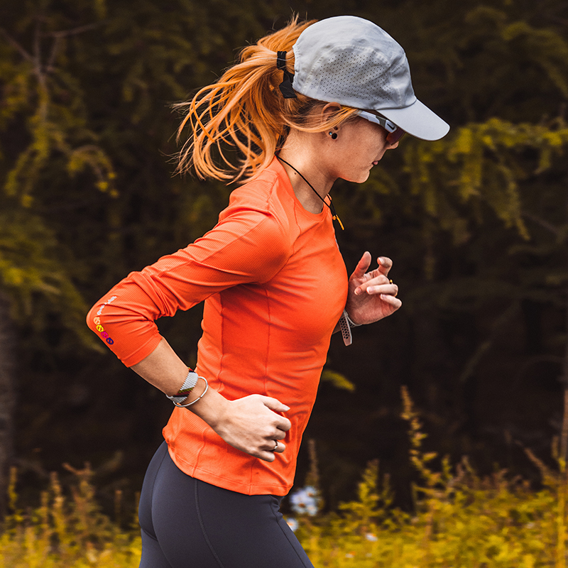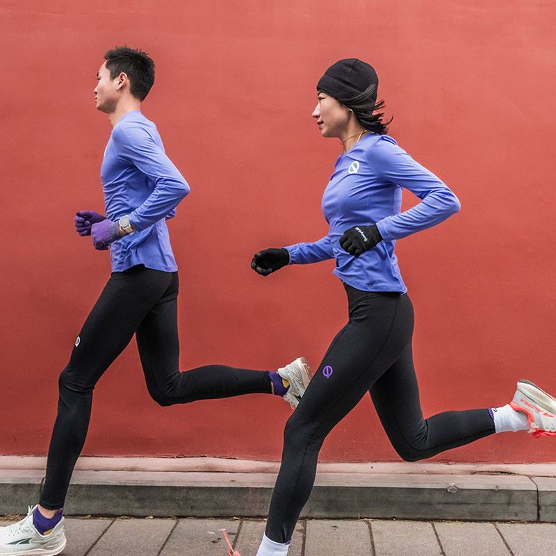 女款 长袖 t恤呼吸方格交叠领轻量速干秋季 轻功马拉松运动跑步长袖