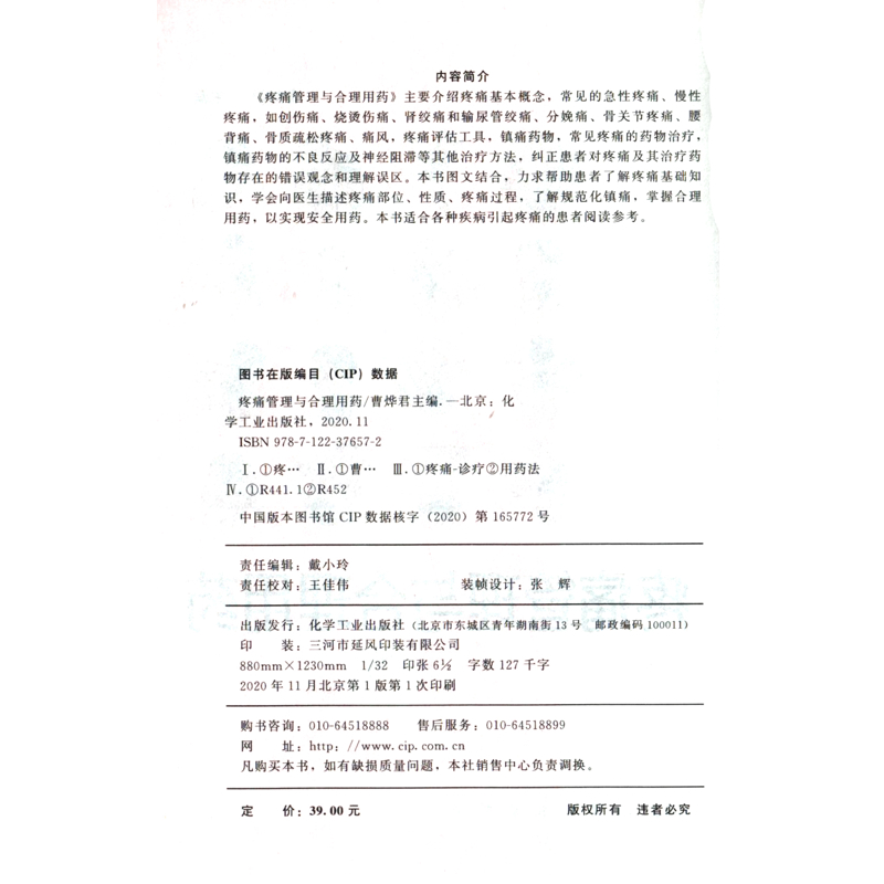 社新华书店正版 疼痛管理与合理用药曹烨君 主编临床医学化学工业出版