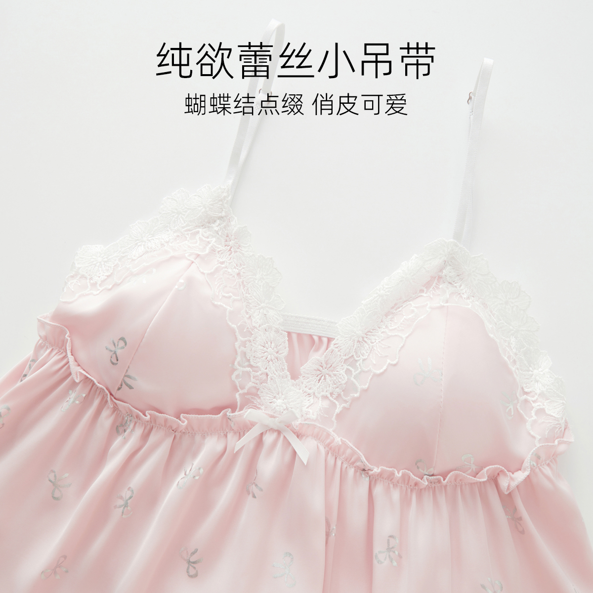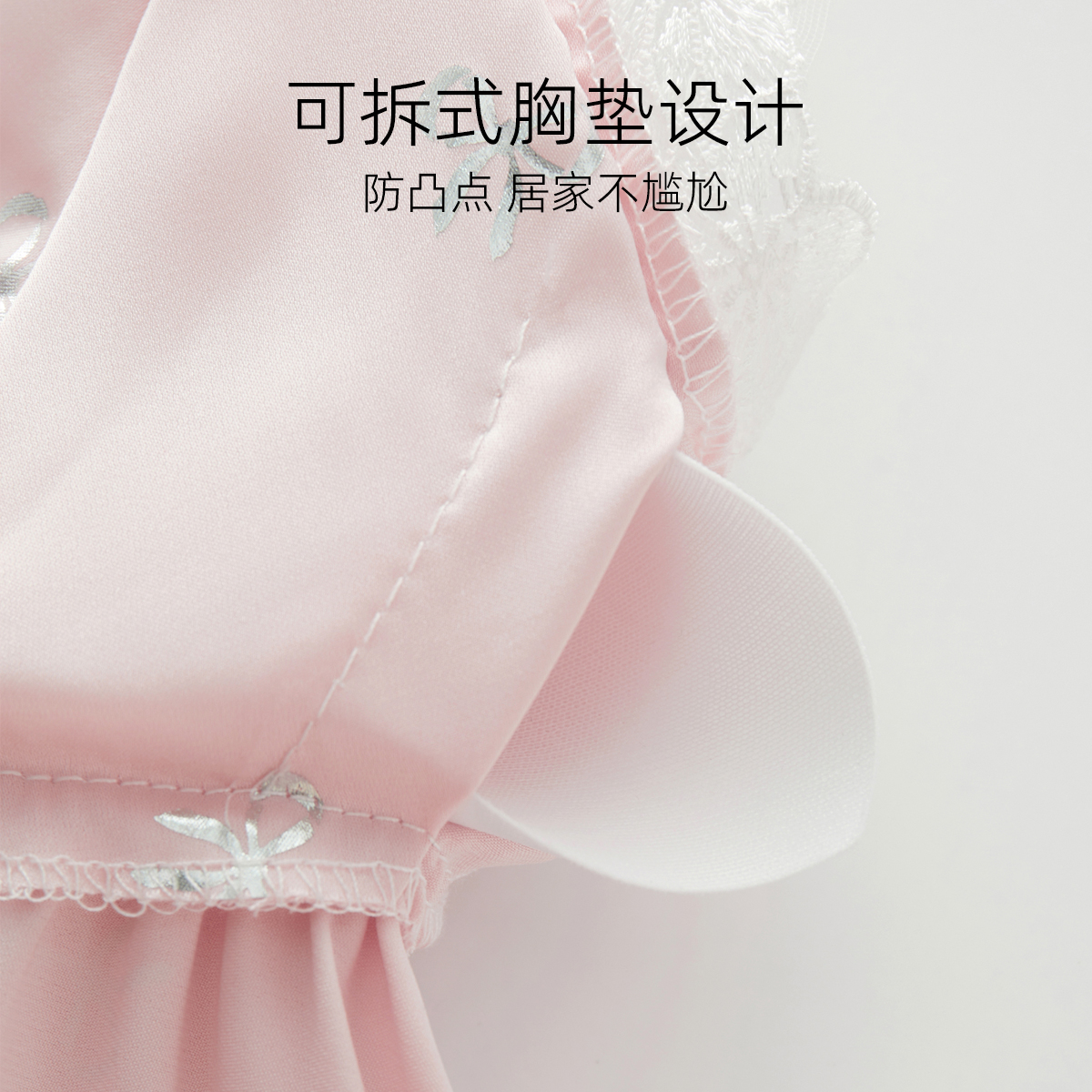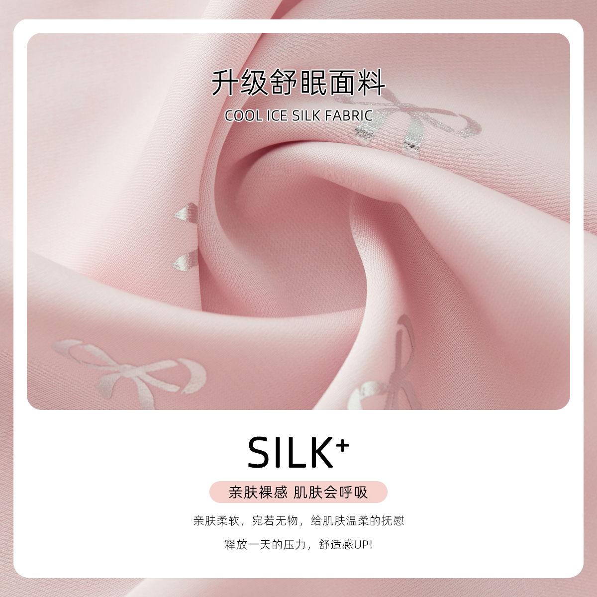 长袖 乐姿梦性感冰丝吊带短裤 带胸垫四件套装 春夏季 家居服 睡衣女款