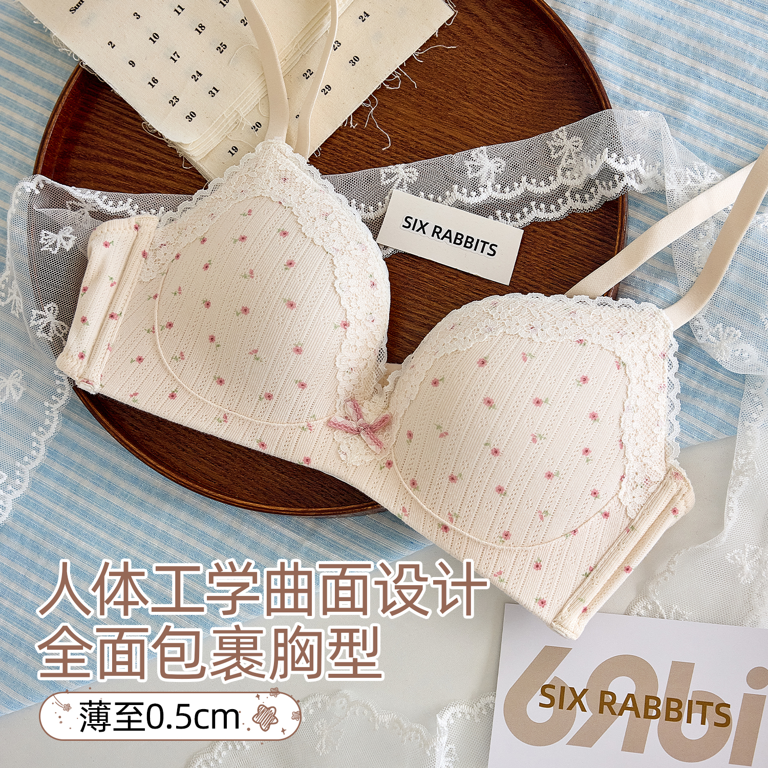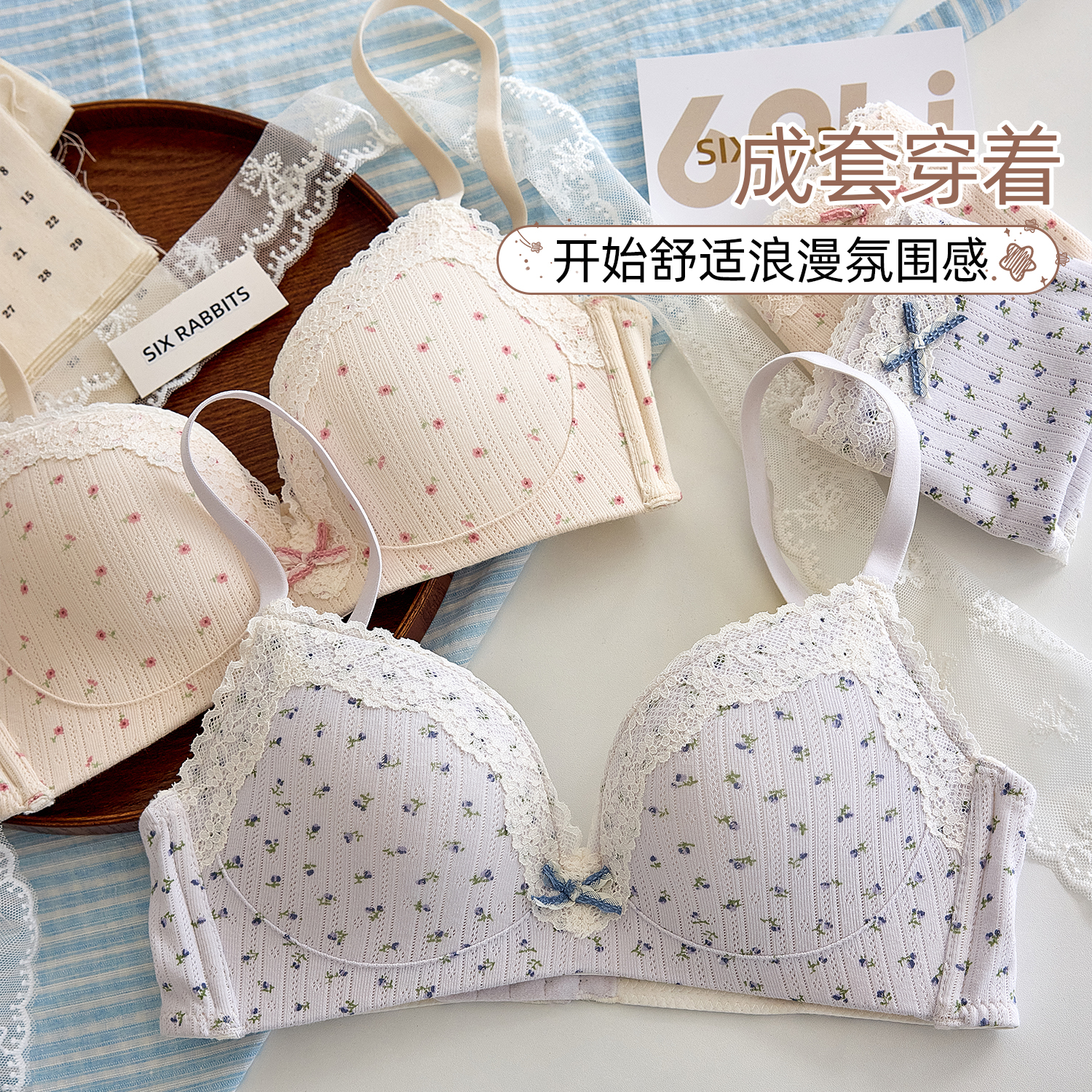 六只兔子小碎花内衣女小胸聚拢显大收副乳防下垂无钢圈女士文胸罩