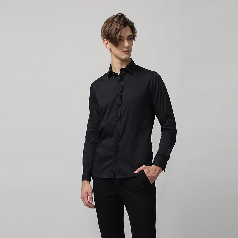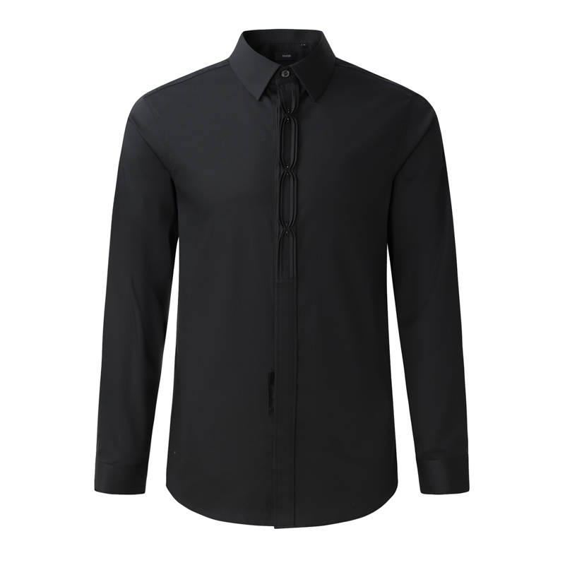 衬衫 长袖 奥莱春秋男门襟活页褶皱烫钻黑色基础款 RARE威雅男装