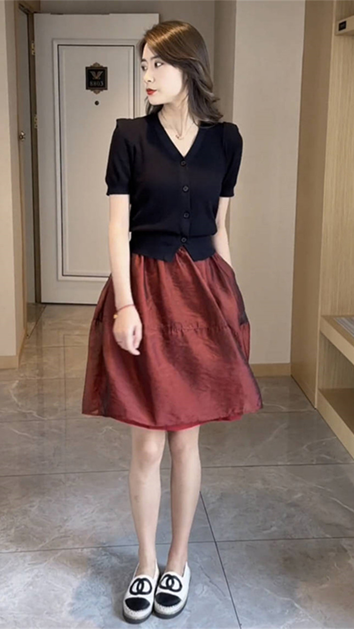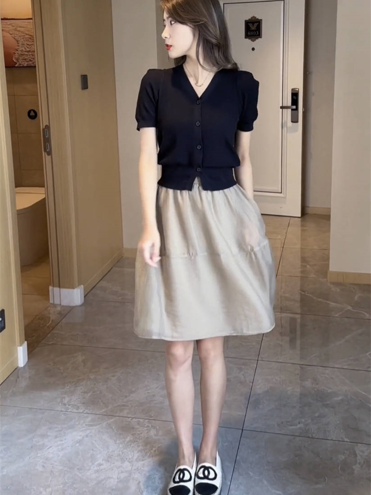 冰丝针织T恤网纱高腰半身裙套装 松紧腰a字蓬蓬裙短裙 女2025夏新款