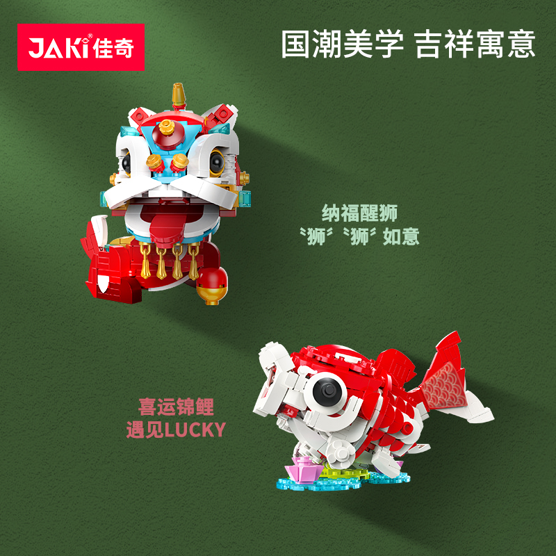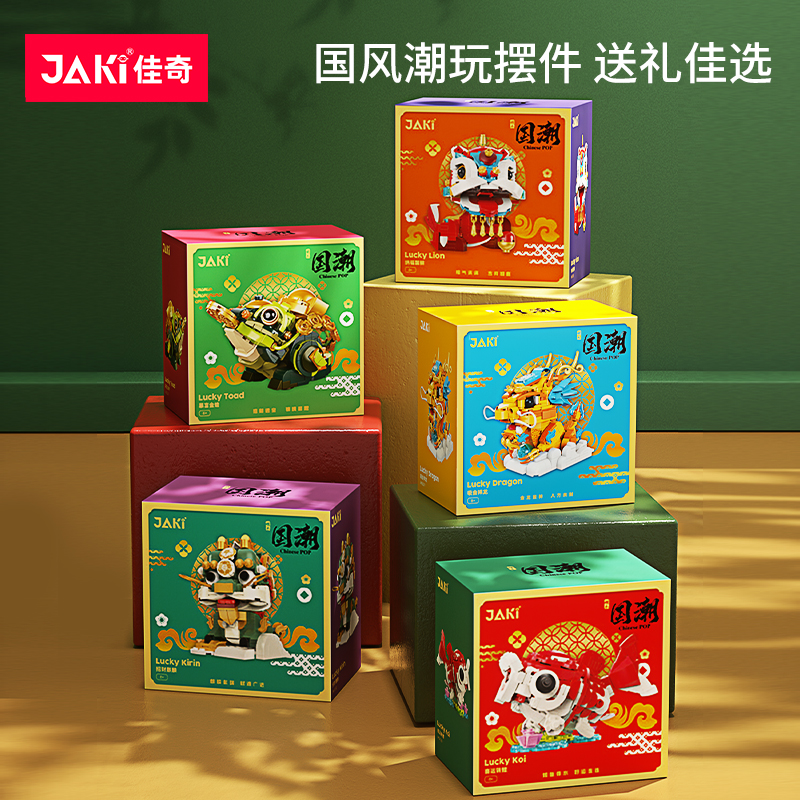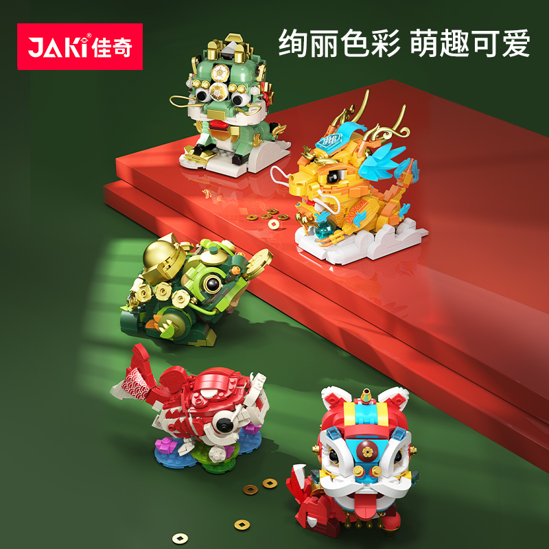 JAKI佳奇积木中国神兽醒狮麒麟国潮摆件模型玩具儿童生日礼物男孩