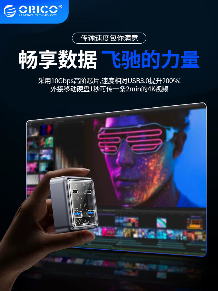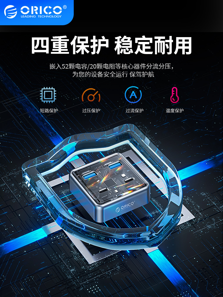 ORICO 奥睿科usb扩展器集分线器桌面扩展坞typec插头多口hub3.2Gen2外接转接带供电转换笔记本电脑多口拓展坞