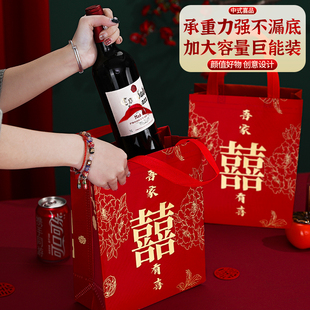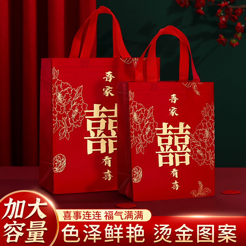 大号喜糖袋结婚红色喜字手提袋婚礼伴手礼盒空盒订婚礼品袋包装 盒
