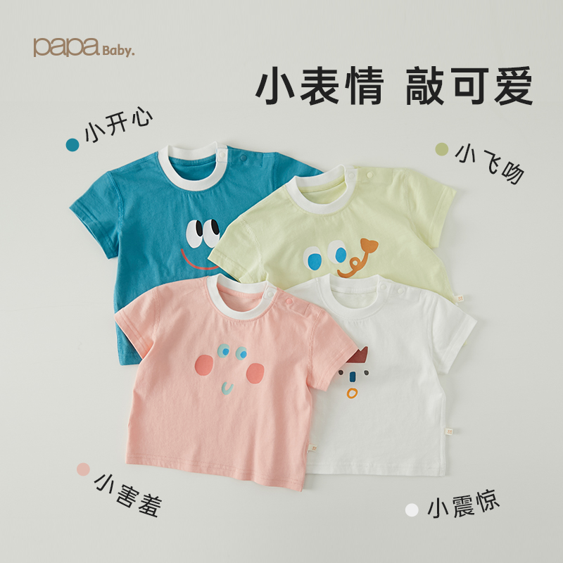 papa爬爬夏季 男女宝印花纯棉无骨小表情上衣透气舒适 婴儿t恤短袖