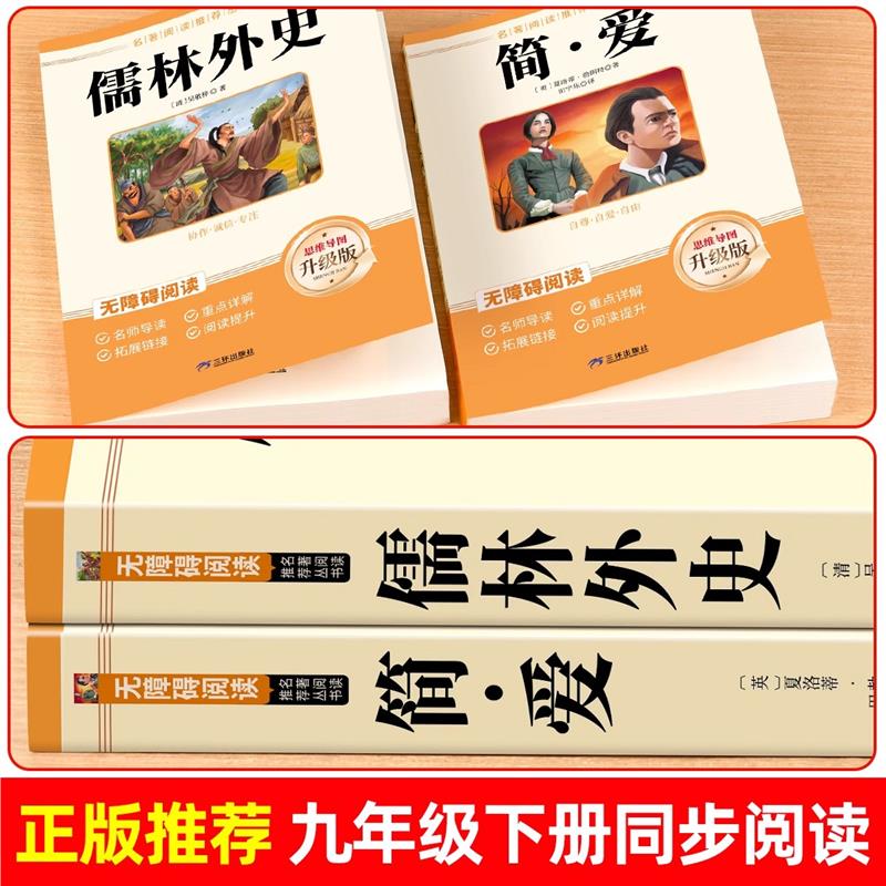 课外书初中课外阅读书籍9年级下册人教版 2025新版 初三 名著吴敬梓原著完整版 语文九下书目白话文 简爱和儒林外史九年级必读正版