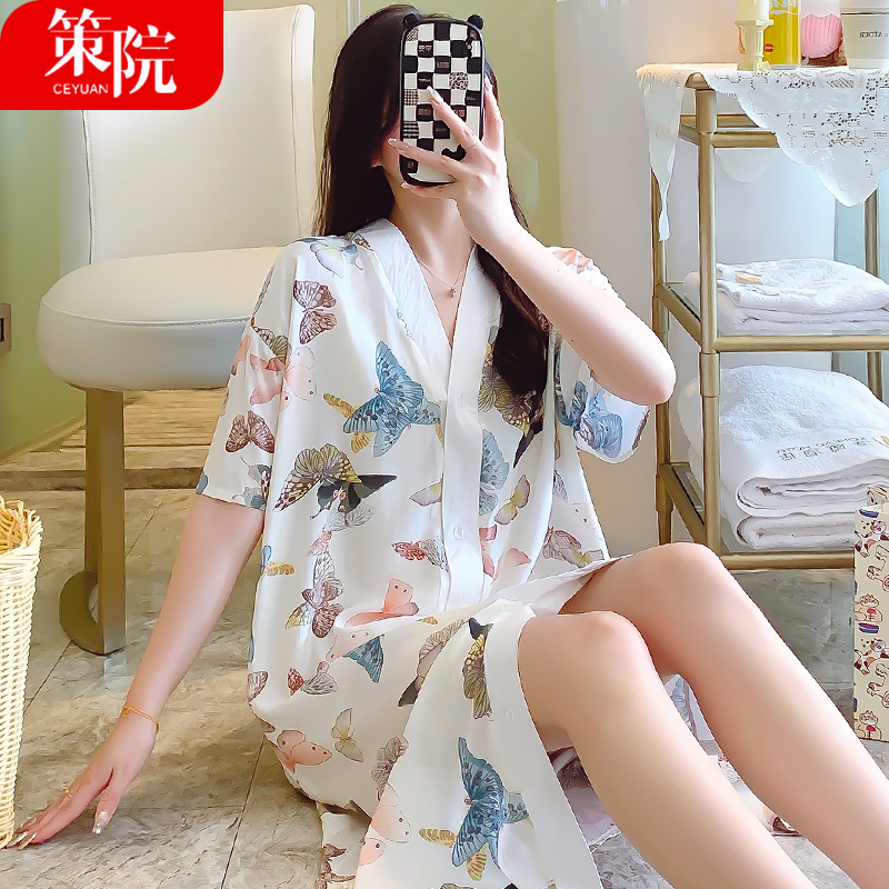 睡裙可外穿 宽松冰丝衬衫 性感睡衣春秋女2025新款 夏纯欲男友风大码