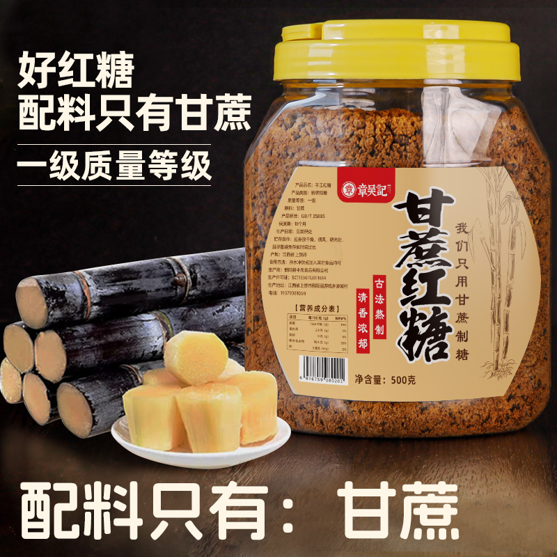 章吴记红糖纯正甘蔗正宗广西一级甘蔗红糖纯手工红糖粉古法罐装