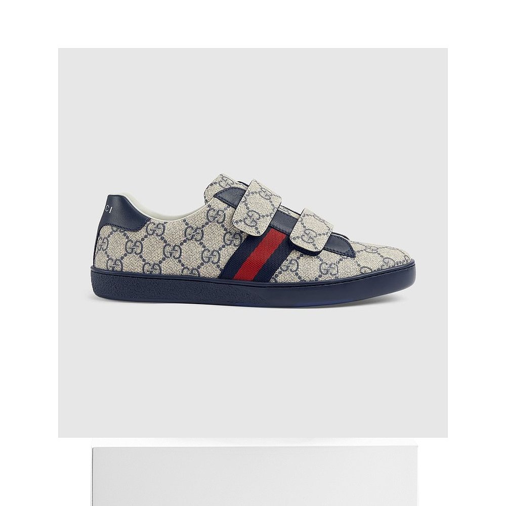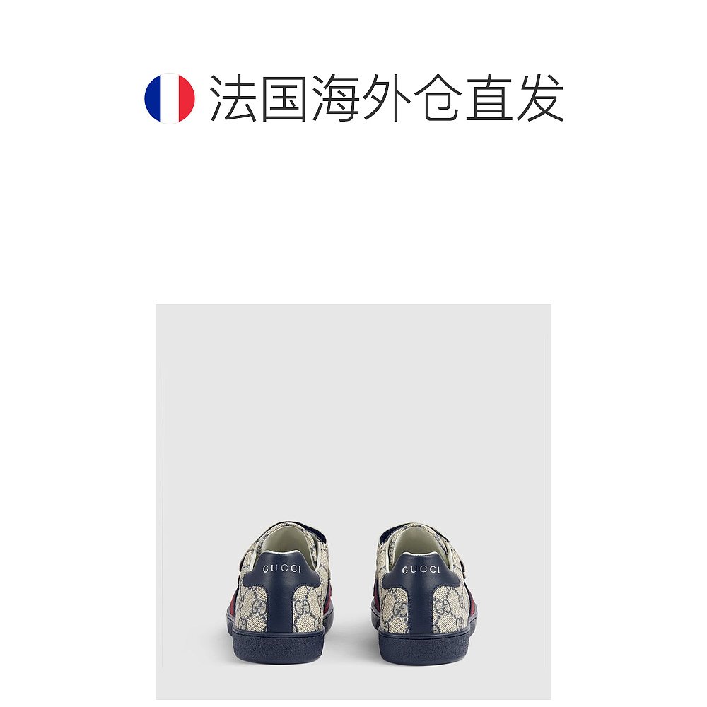 自营欧洲直邮Gucci古驰Ace系列女孩蓝色和灰色经典 老花帆布青少年