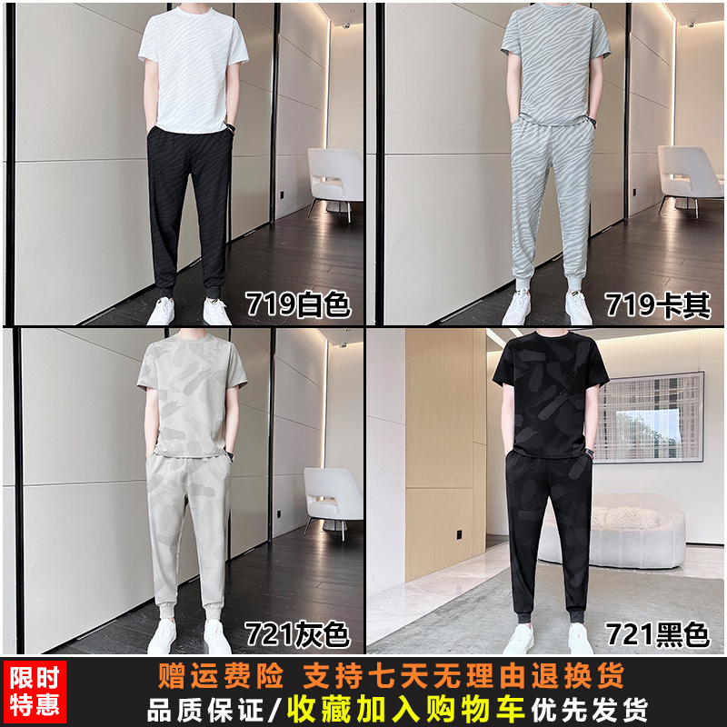 t恤长裤 冰丝套装 潮流痞帅短袖 夏季 休闲运动速干潮牌搭配一套 男装