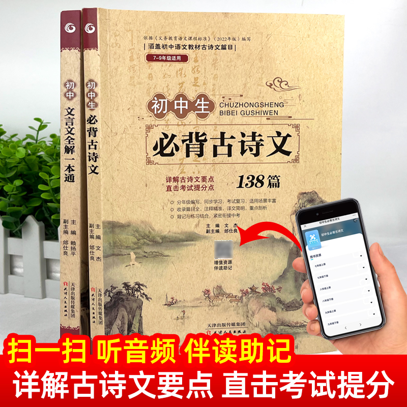 初中必背古诗词和文言文全解一本通初中版 同步完全解读课内外译注与赏析训练初一初二初三七八九7至9年级 全解全练138篇人教版