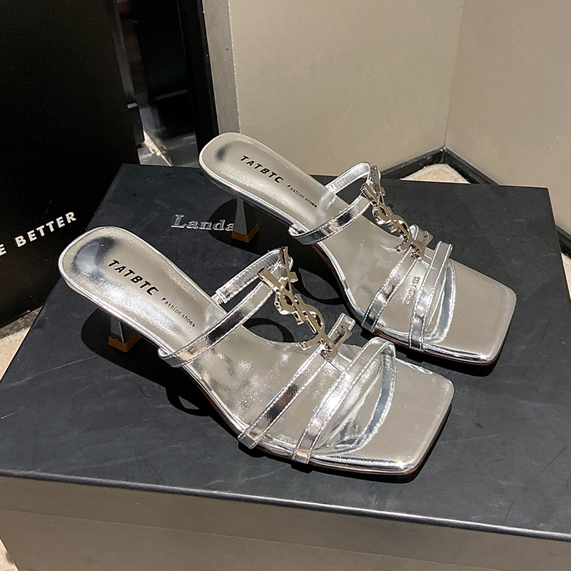 细跟一字拖高跟鞋 水钻方头后空时尚 新款 女外穿2025年夏季 5CM 拖鞋