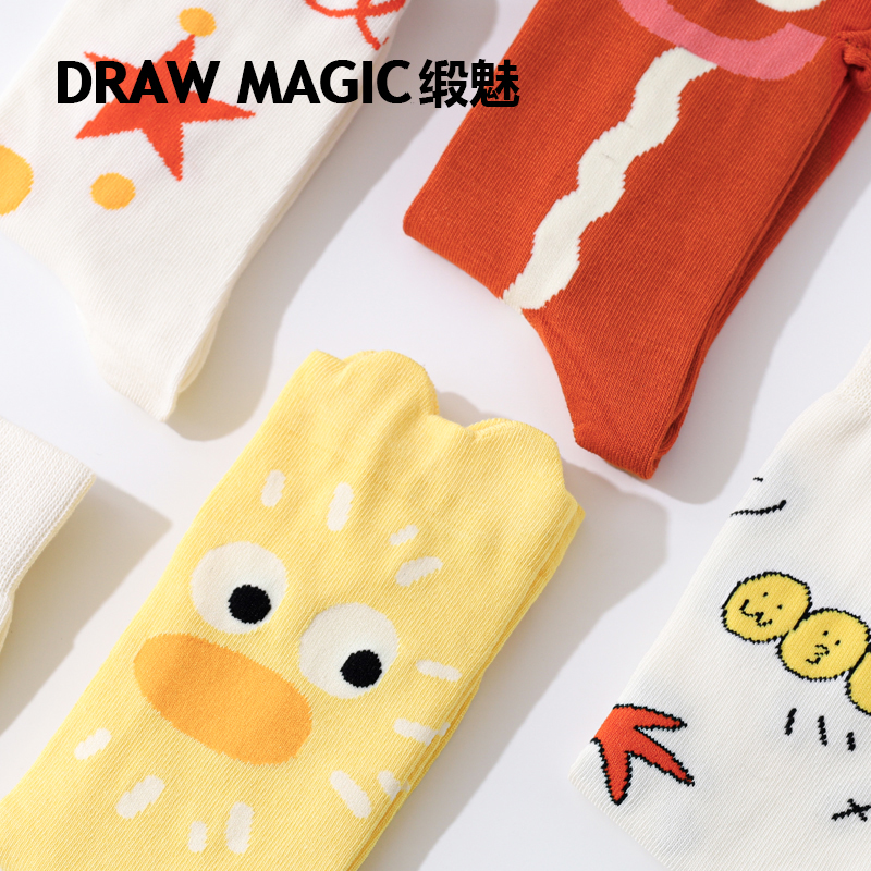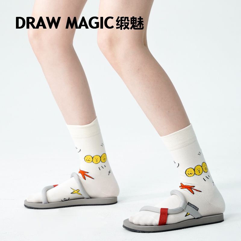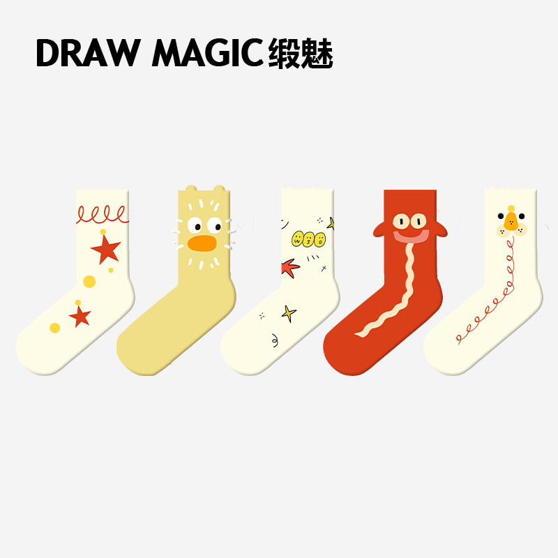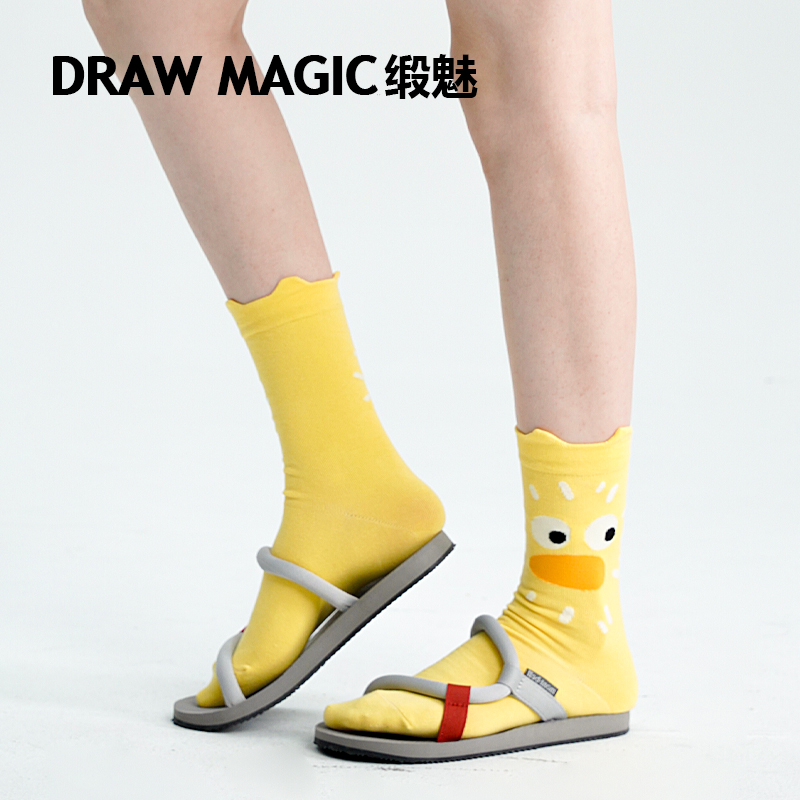 春秋款 卡通趣味ins潮搭配凉鞋 中筒袜棉 缎魅袜子女时尚 DRAWMAGIC