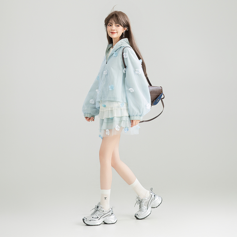 防走光轻运动高腰百褶短裙子 轻纱拼接A字半身裙夏季 KEIKO 扎花