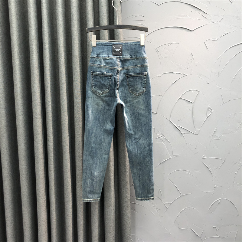 小香风彩色字母logo高腰直筒牛仔裤 非市场货 深圳南油高端女装
