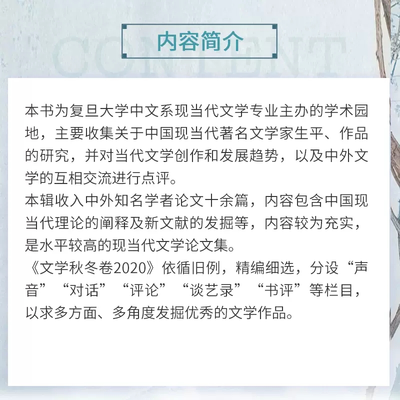 复旦大学出版 王德威主编 社 中国现代文学研究文集 当代文集 文学·2020秋冬卷 现当代文学 陈思和