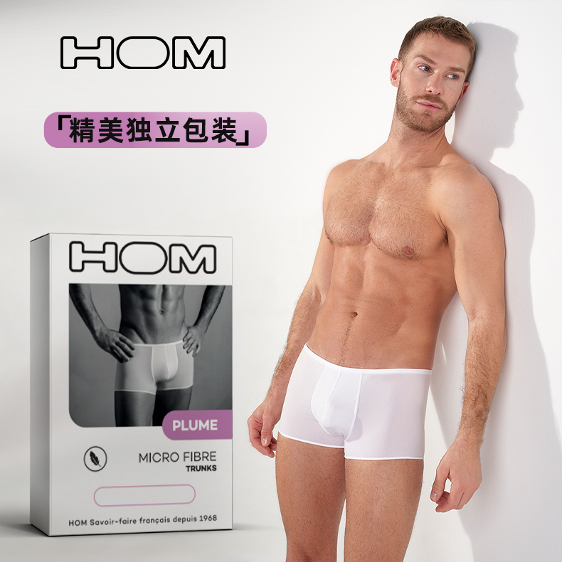 男士 正品 无痕冰丝薄款 平角裤 无感透气中腰四角短裤 法国HOM内裤